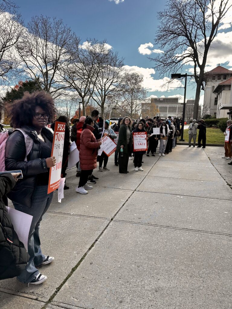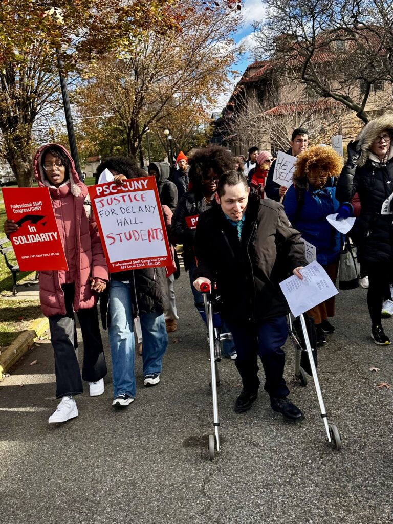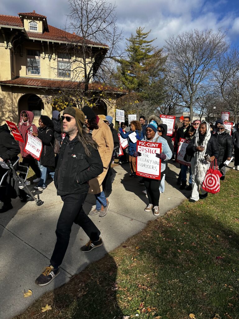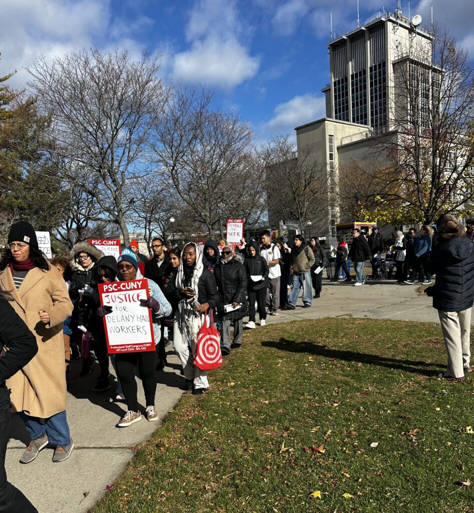 Today we marched and rallied to protect the health of Delany Hall occupants and our entire campus community. The rally coincided with a step 1 hearing on a grievance that PSC has filed on behalf of those harmed at Delany. Read more about the campaign and sign the petition.
